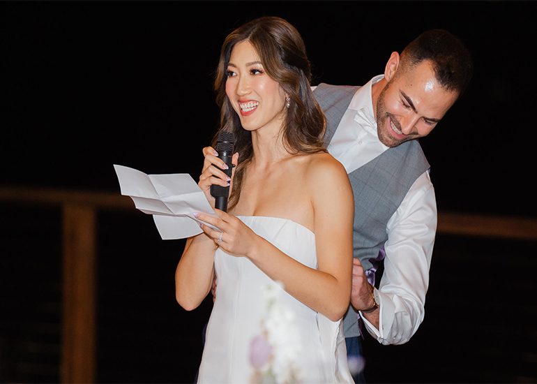 Let’s be real: No one came to the wedding to hear a TED Talk. Keep your speech between 3 to 5 minutes. Anything longer, and you risk losing your audience’s attention (and maybe a few eye-rolls). Get to the point, say what needs to be said, and leave them wanting more.