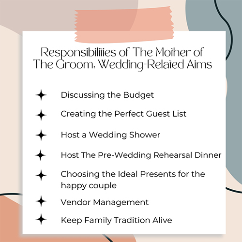 A guest list is similar to a puzzle in requiring careful assembly. The Mother of the Groom, including immediate relatives and friends, may greatly assist in this regard. She helps strike a balance between the two sets of wedding invites and ensures the Groom's key people are considered.