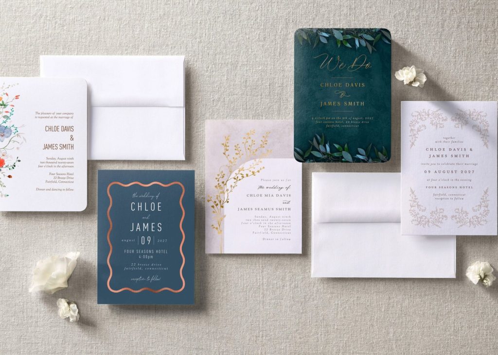 Different papers, prints, and levels of intricacy can have a wide range of costs in custom invitations. Clearly state your budget and timeline to make sure that your wedding stationery arrives on time.