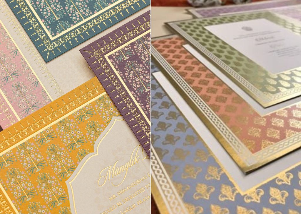 A physical touch for lack of a better phrase hits differently, especially when you’re talking about an invitation you crafted with care. Rich, luxurious paper, shimmering gold foil that reflects the light, letterpress impressions that massage your fingertips all of these senses create an impression that lasts. Your guests will know you put in effort and thought immediately.