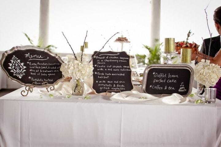 Another option to personalize your menus made of paper is to make menu boards. You can make use of chalkboards or wooden panels to create a beautiful, handwritten menu that is placed on display at your reception. This method is especially suitable for buffets and family-style meals which guests serve themselves.