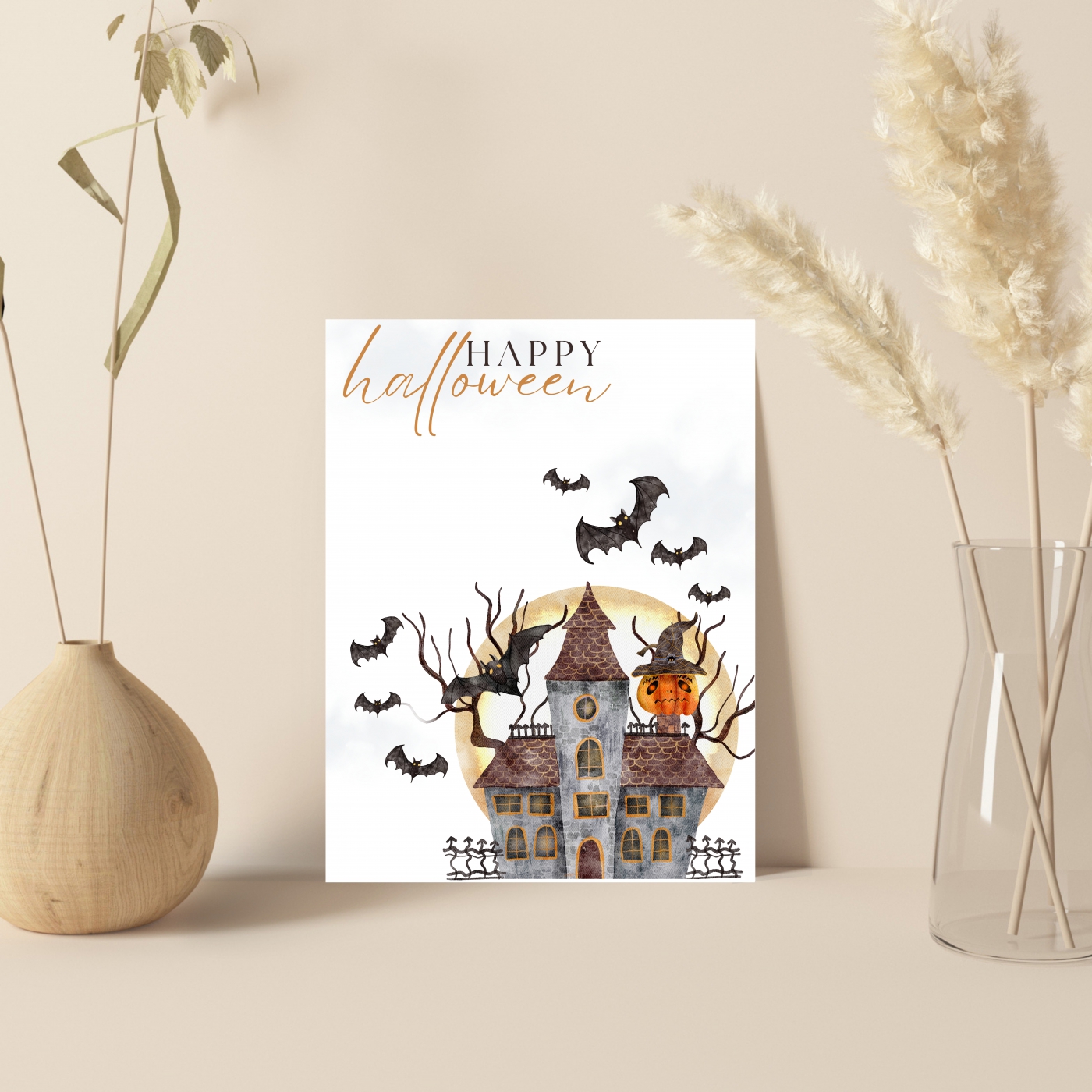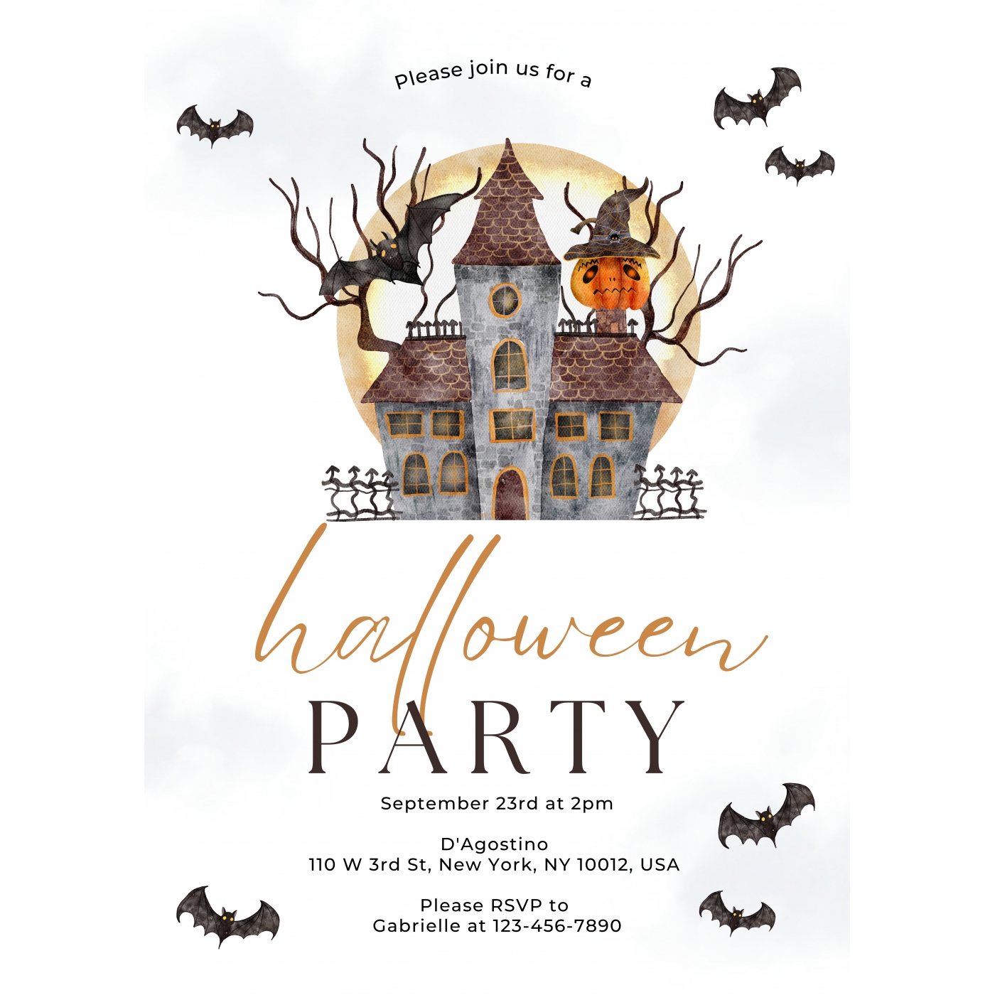 WHITE MATTE WEDDING INVITATION : CHAUNTED-HOUSE